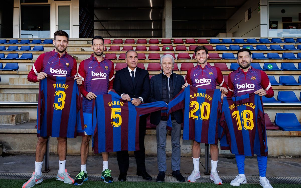 The captains of the first team have collected this Thursday morning the 2020 Barça Players Award, granted by the Club’s Former Players Association. Sergio Busquets, Gerard Piqué, Sergi Roberto and Jordi Alba have been handed the gift on behalf of the whole squad, who are the recipients of this honor for their exemplary attitude in the first months of the coronavirus pandemic. In the 2020 Barça Players Award Edition, the recipients were both men’s and women’s first teams. For circumstances regarding the pandemic, the prize could not be handed until now.